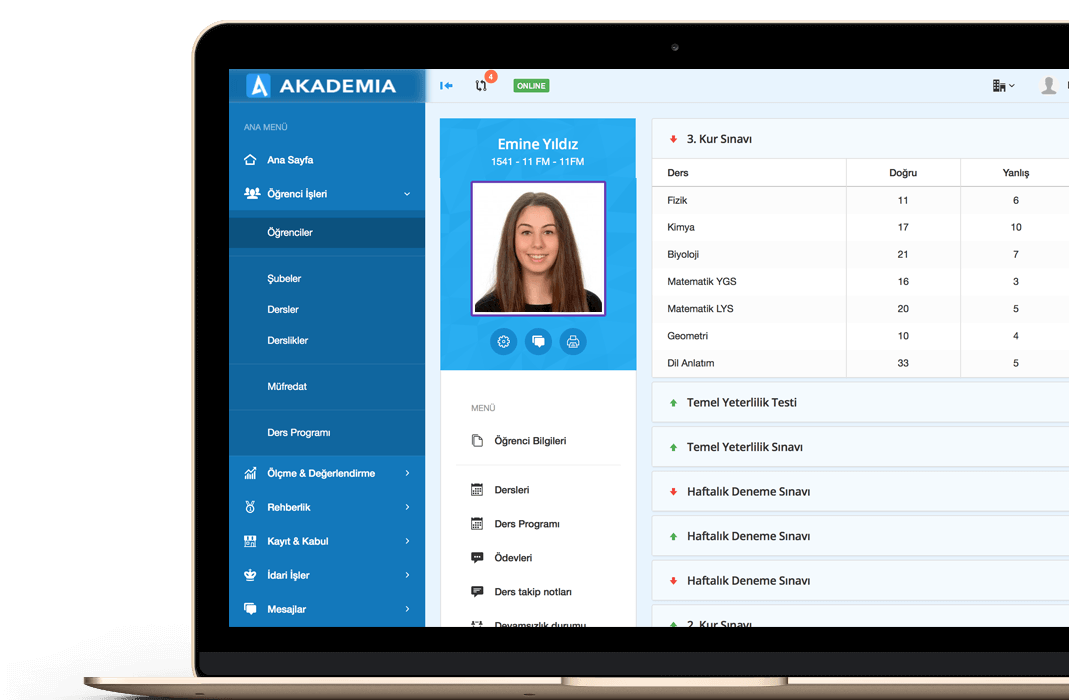 Teknolojiyi farkındalıkla bir araya getiren; yenilikçi ve işlevsel online okul yönetim sistemleri projesi ile AKADEMIA özelliklerle değil faydalara odaklanmanızı sağlayacak çözümler sunuyor.